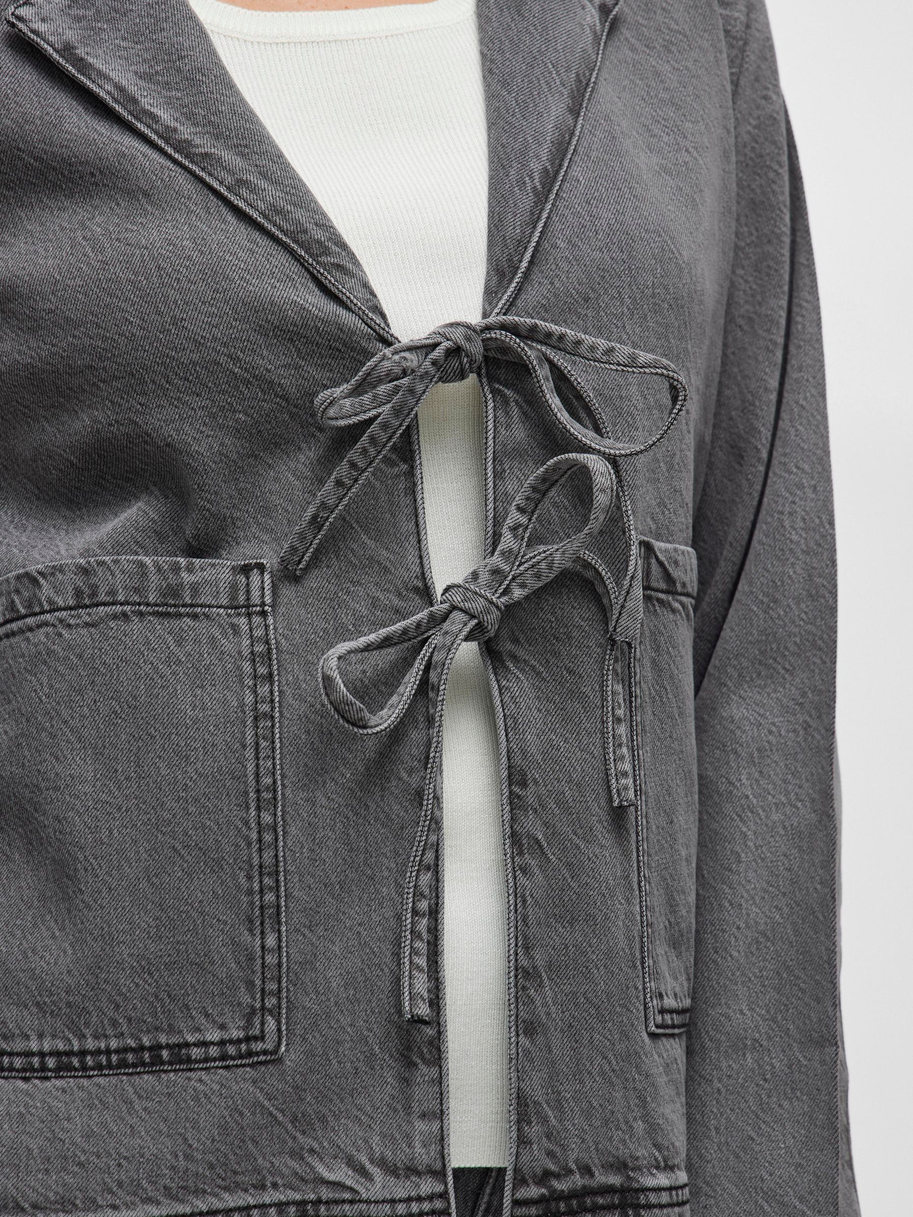 • Tie front denim jacket• Long sleeves• Front pockets• Regular fit• Length: 62 cm in size 38• Sleeve length: 61 cm in size 38