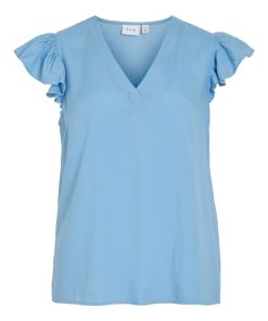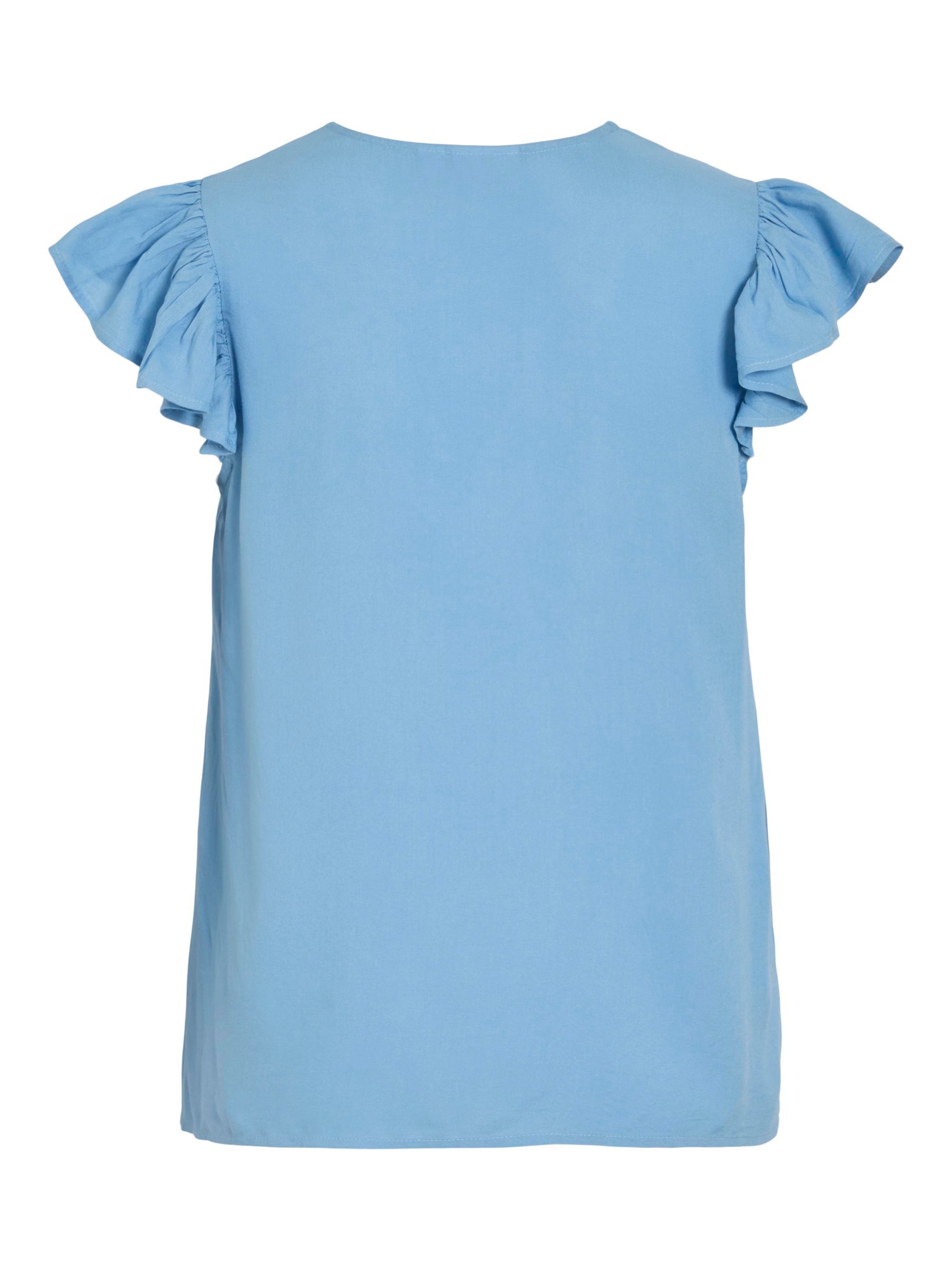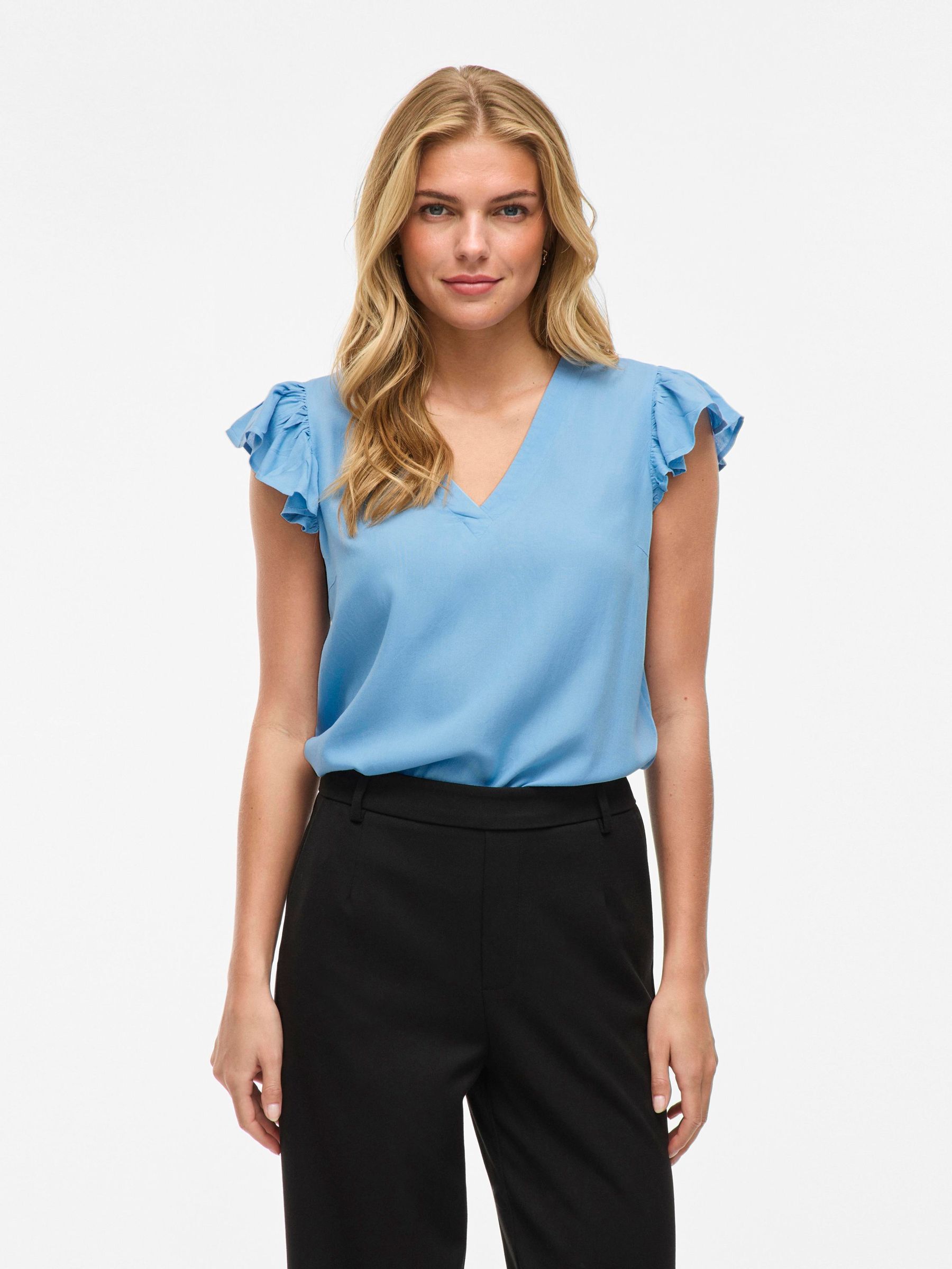 • Casual cap sleeve top• V-neck• Light, non-stretchable fabric• Regular fit• Length: 64 cm in size 38