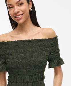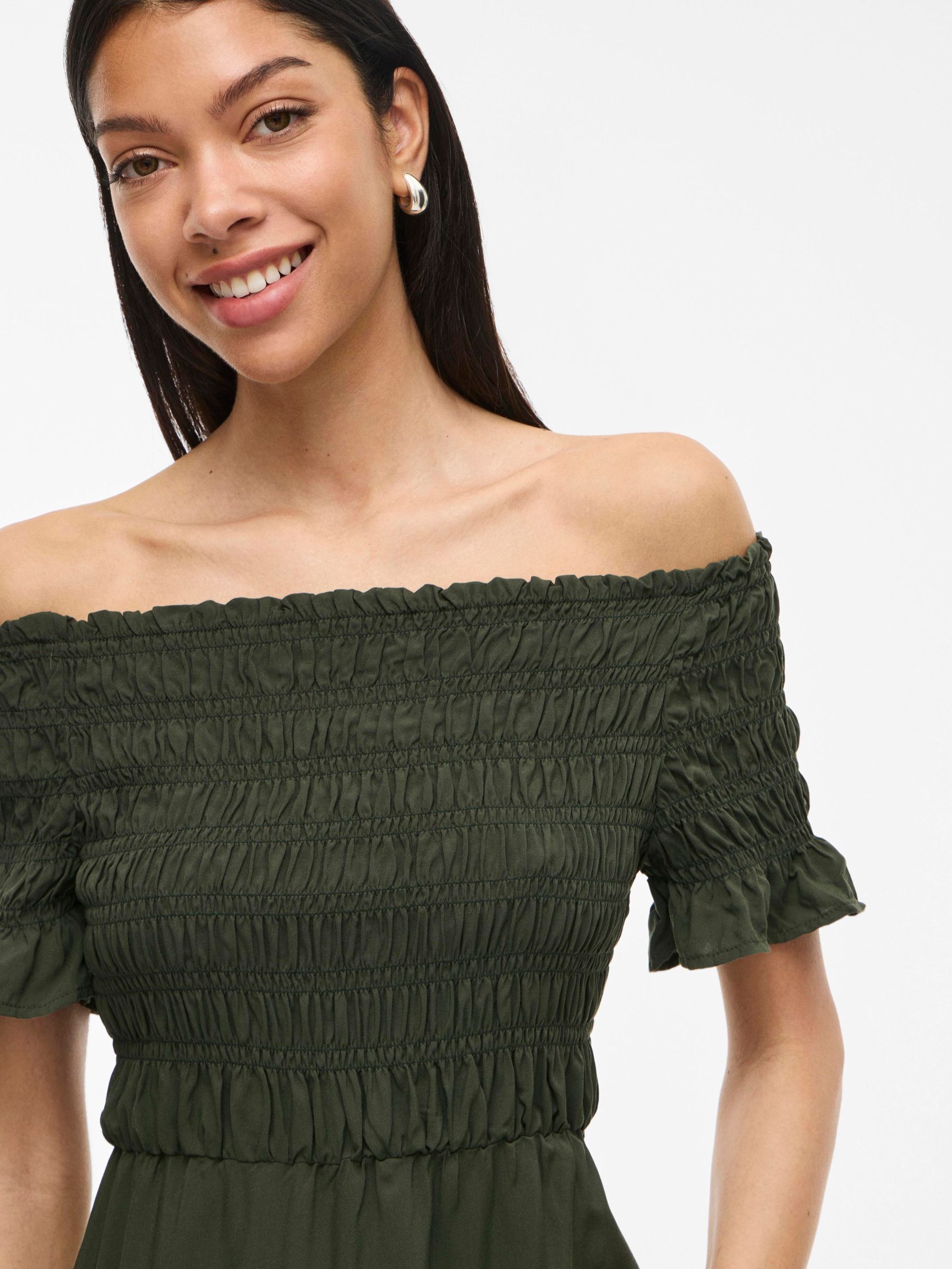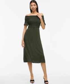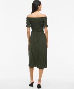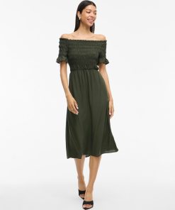 VILA Women’s Vilisa Off-shoulder Midi Dress | Deep Depths