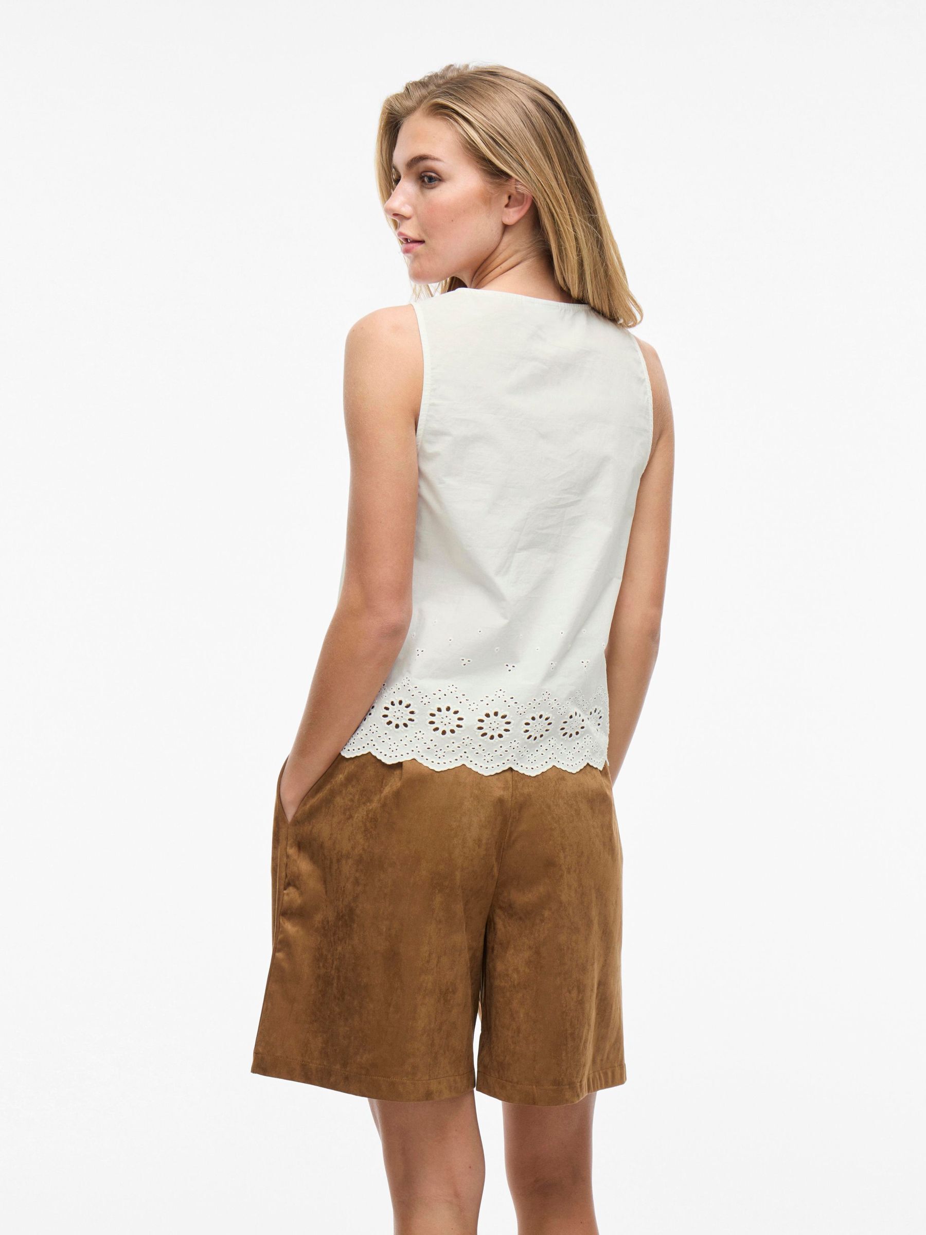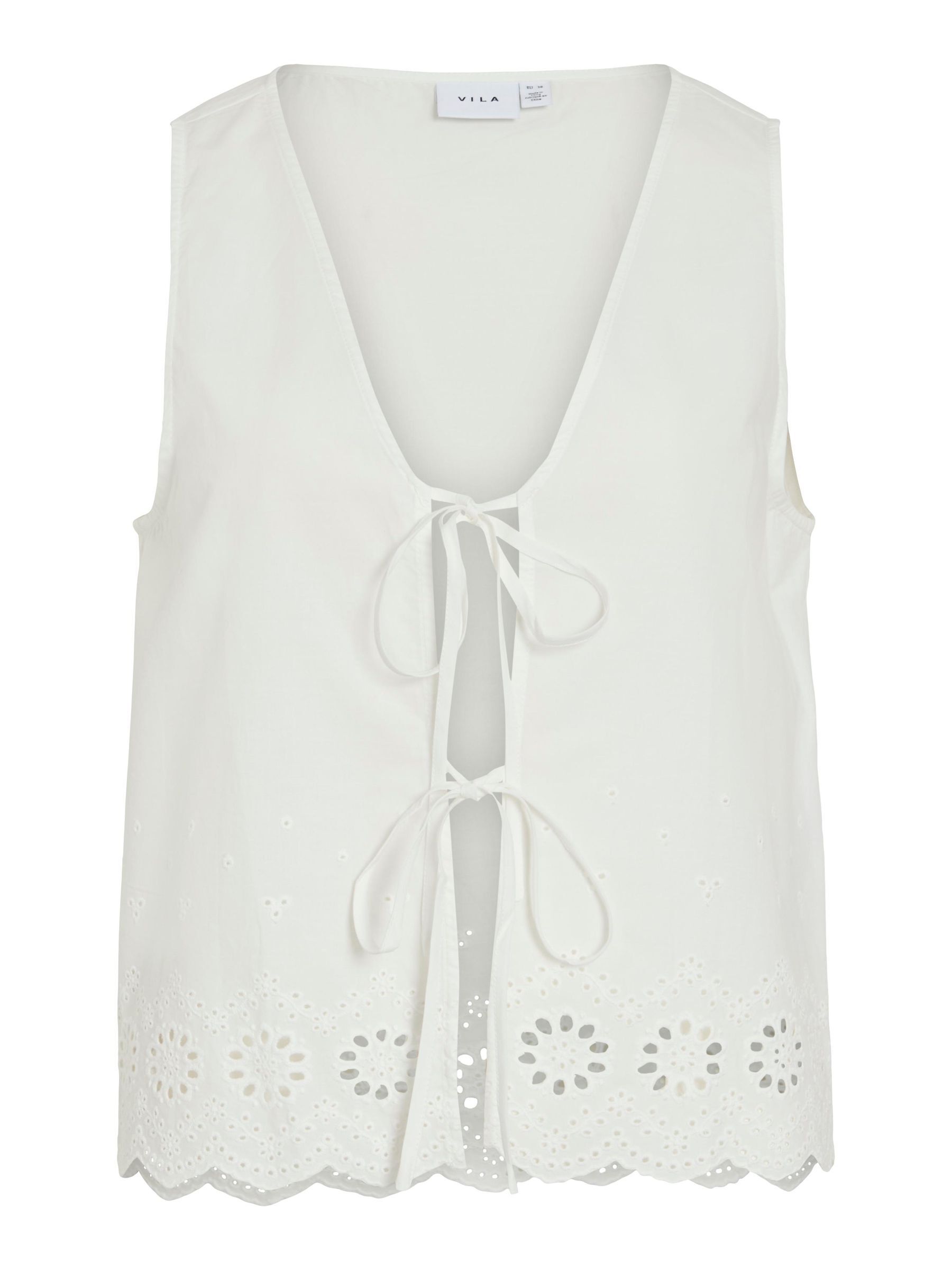 • Sleeveless front tie top• V-neck• See-through details• Light fabric• Regular fit• Length: 56 cm in size 38