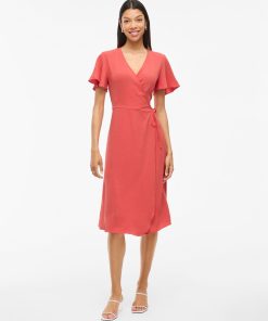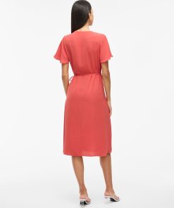 VILA Women’s Vilovie Short Sleeved Wrap Dress | Paprika
