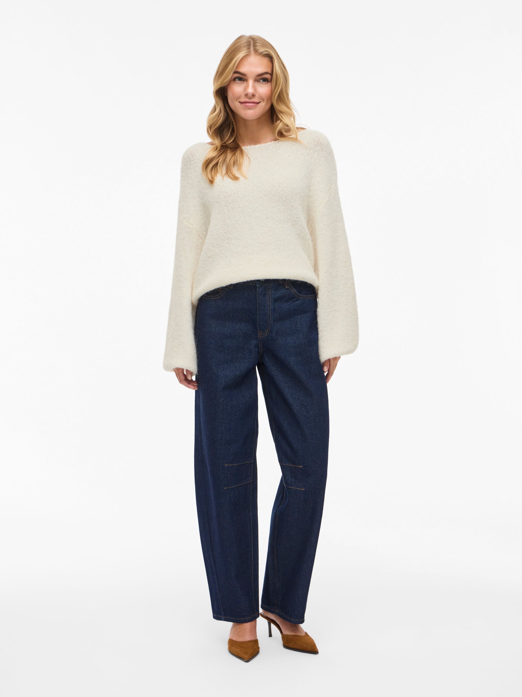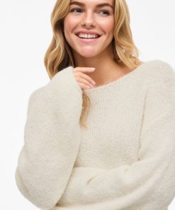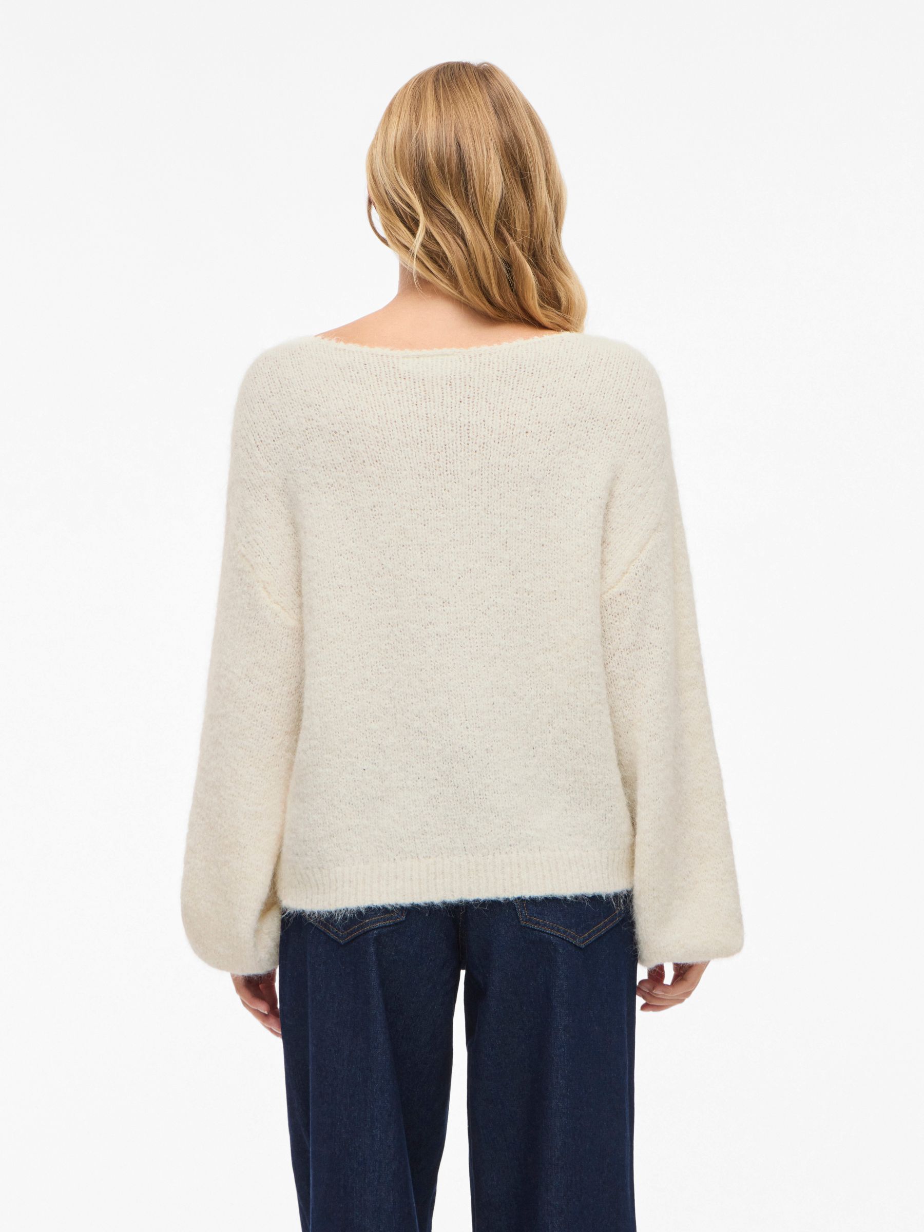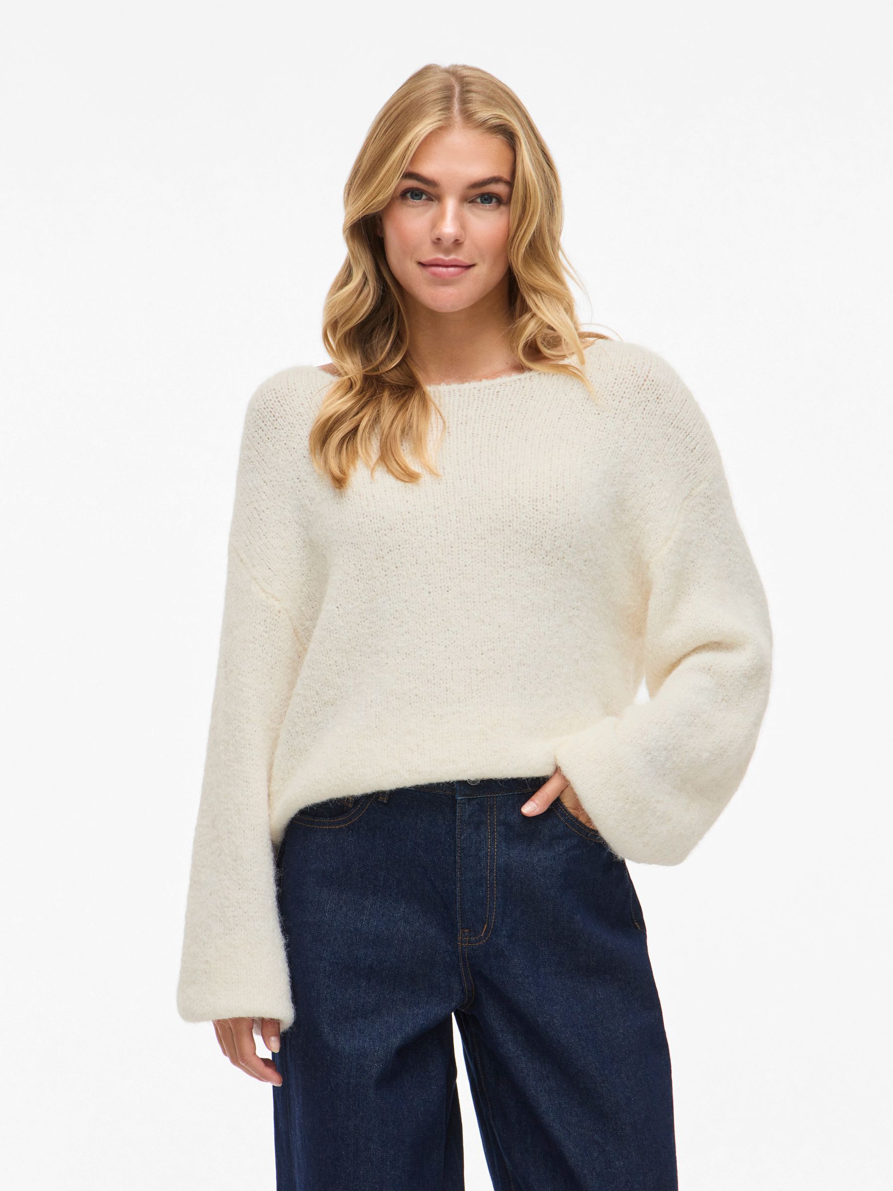 • Comfy knitted jumper• Boatneck• Dropped shoulders• Long, voluminous sleeves• Stretchy knit• Regular fit• Length: 56 cm in size M• Sleeve length: 78 cm in size M