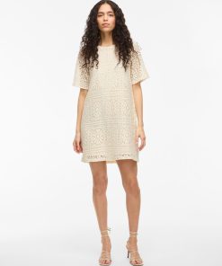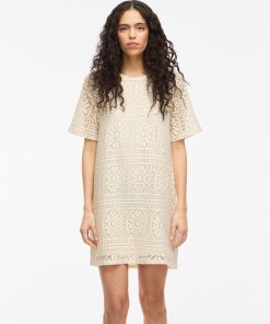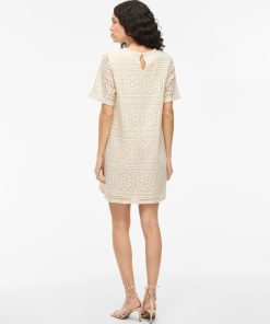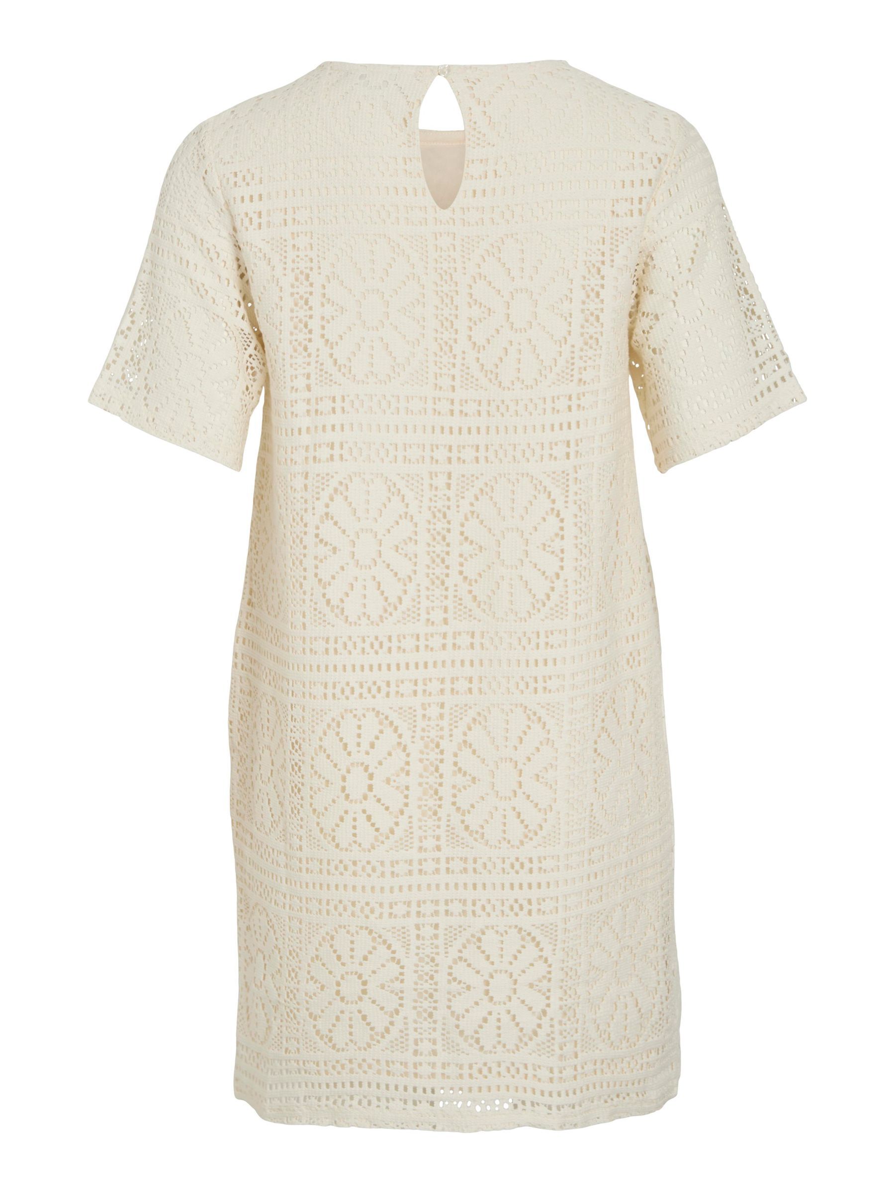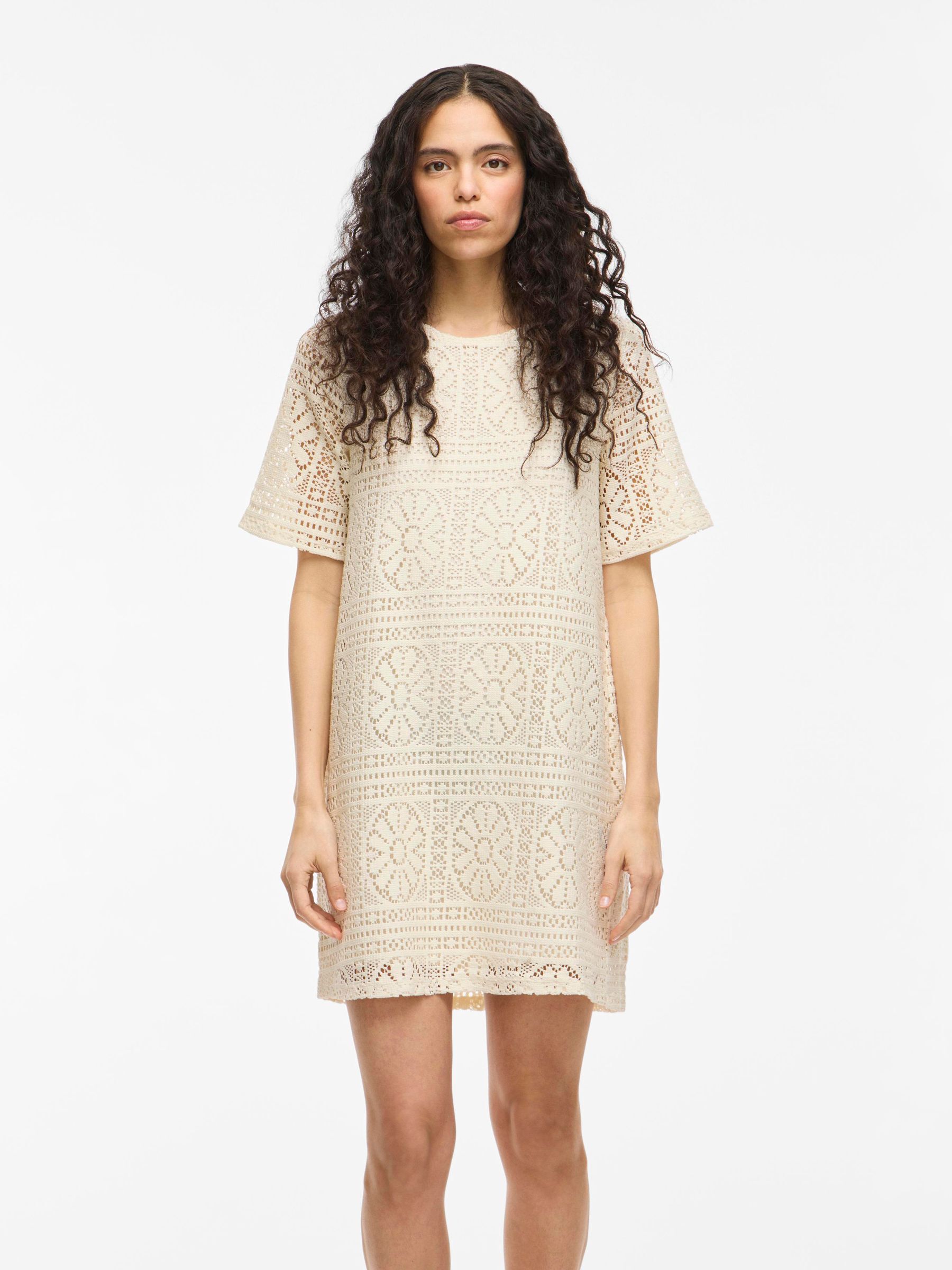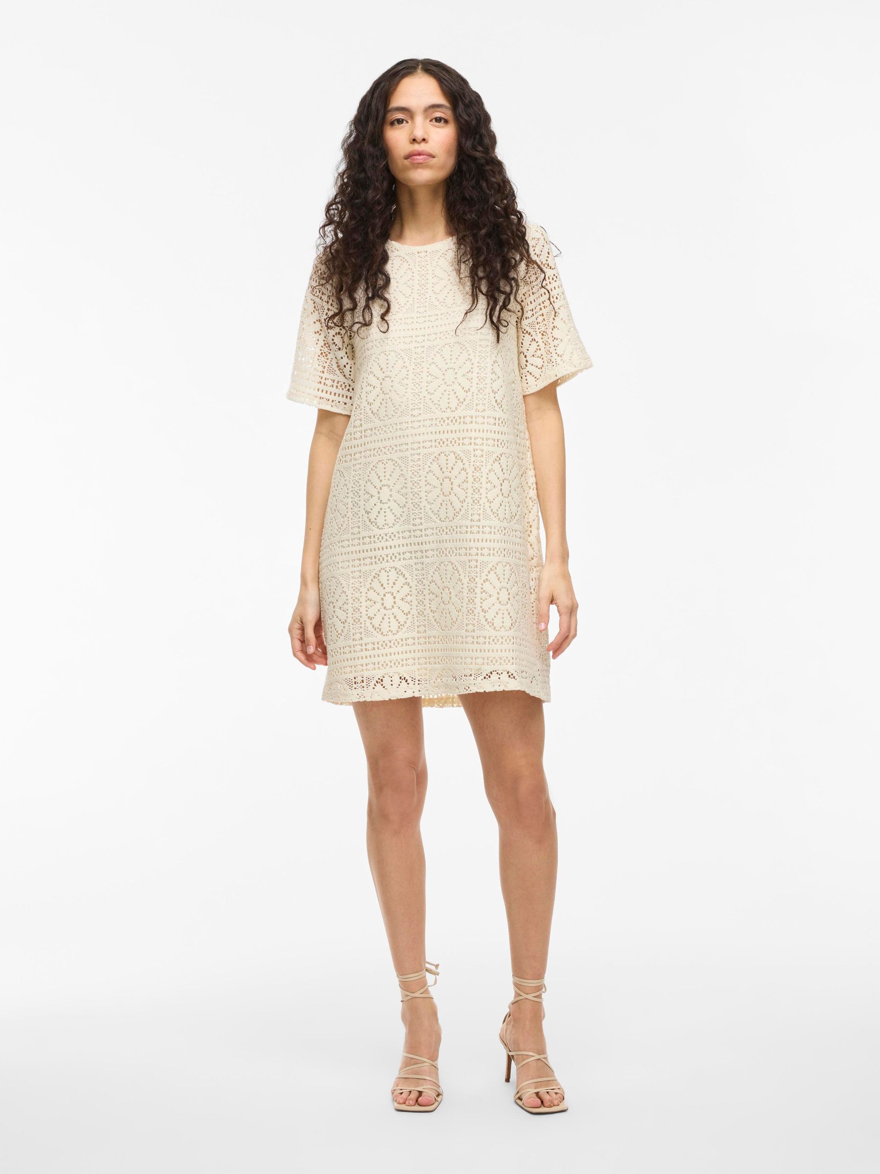 • Short-sleeved crochet dress• Short-length• Round neck with button-keyhole fastening• Lined body• Regular fit• Length: 92 cm in size M• Sleeve length: 28 cm in size M