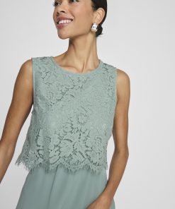 • Sleeveless maxi dress• Lace detail• Round neck with button-keyhole fastening• Elastic cutline at waist• Regular fit• Length: 141 cm in size 38