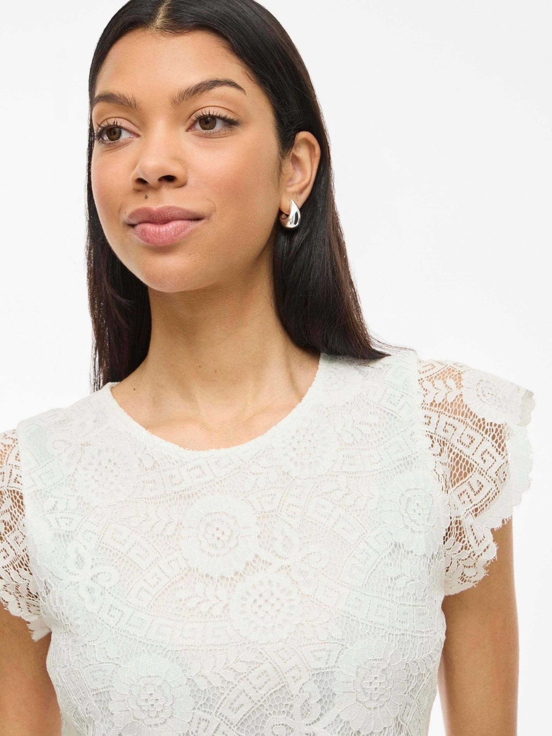 • Short sleeved lace top• Round neck with button-keyhole fastening• Lined body with sheer overlay• Regular fit• Length: 62 cm in size M• Sleeve length: 9 cm in size M