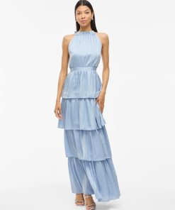 • Maxi dress with halter neck• Elastic cutline at waist• Tiered design• Elegant shiny fabric• Regular fit• Length: 150 cm in size 38