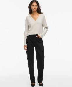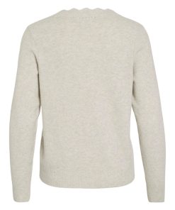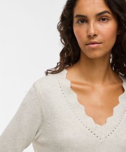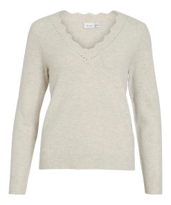 VILA Women’s Vinikolina V-neck Knitted Pullover | Super Light Natural Melan