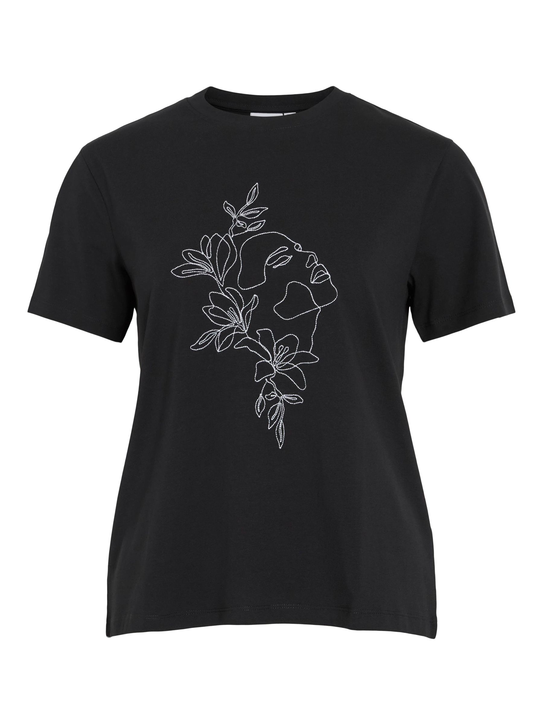 VILA Women’s Vinora Round Neck T-shirt | Black Beauty