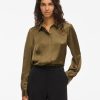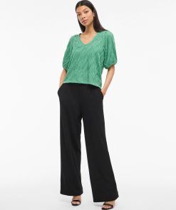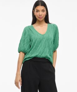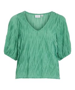 VILA Women’s Violana V-neck Short Sleeved Top | Winter Green
