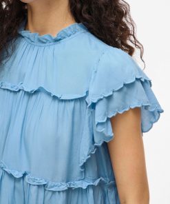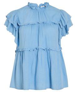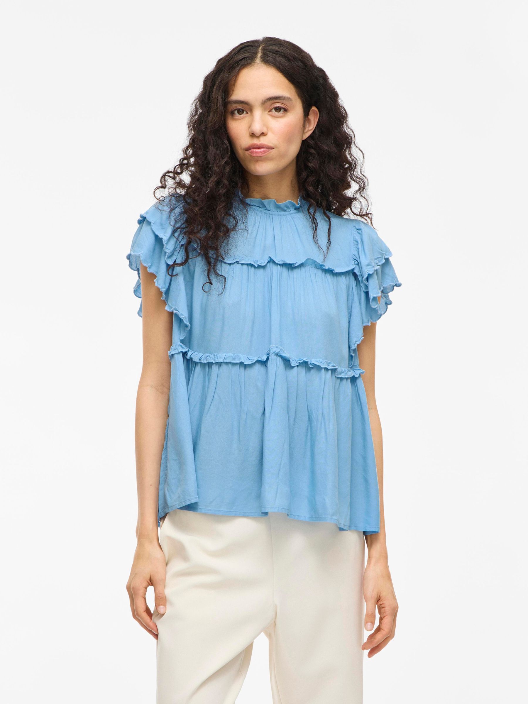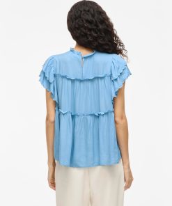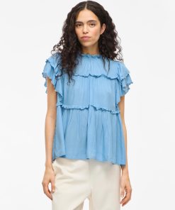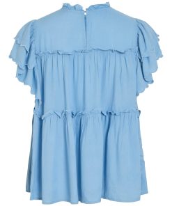 VILA Women’s Vipreta High Neck Cap Sleeve Top | Blissful Blue