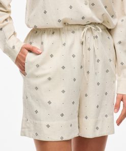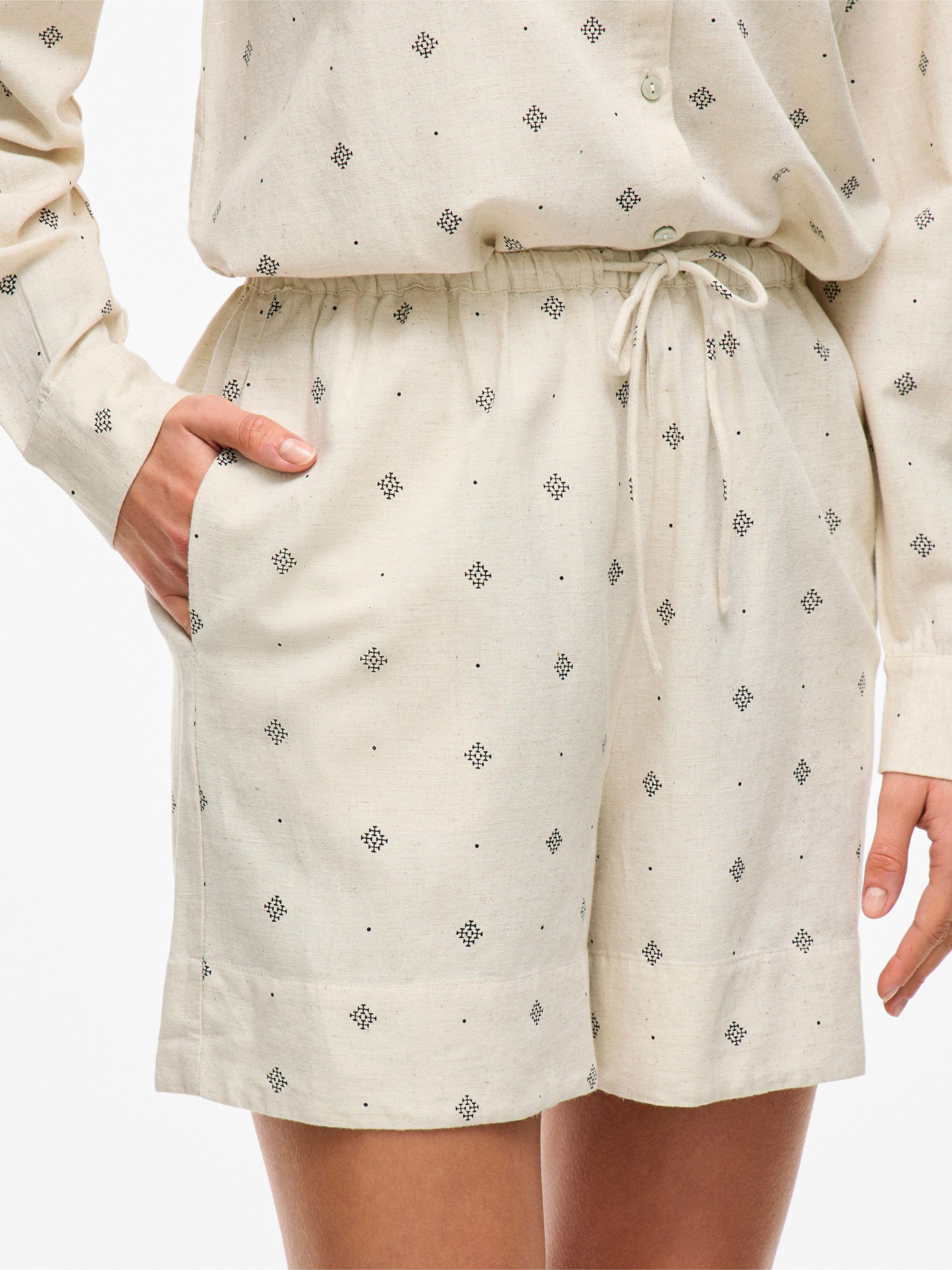 • Mid-waist shorts• Printed fabric• Elastic, tie string waist• Side pockets• Inseam: 12 cm in size M• Frontrise: 32 cm in size M