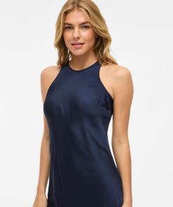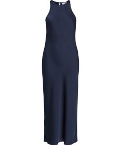 • Sleeveless maxi dress• Round neckline• Button keyhole fastening at back• Satin look fabric• Body-hugging fit• Length: 135 cm in size 38