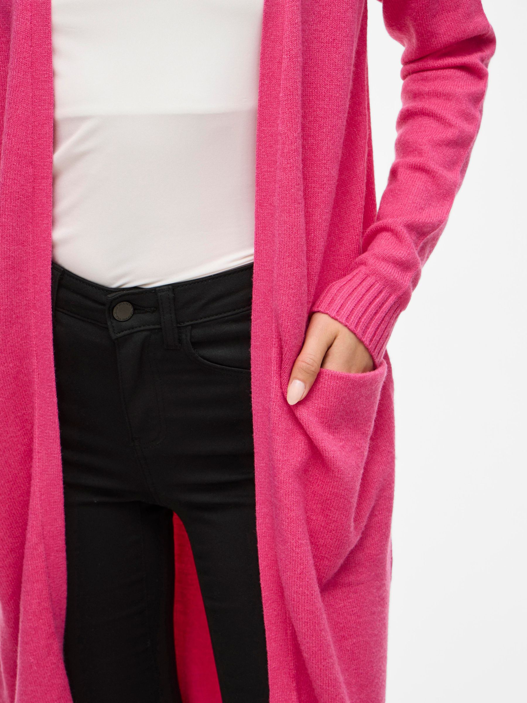 – Long knitted cardigan- Pockets in the front- Long sleeves- Length: 102 cm in size M- Sleeve length: 70 cm- Our model is 180 cm tall and wears size M