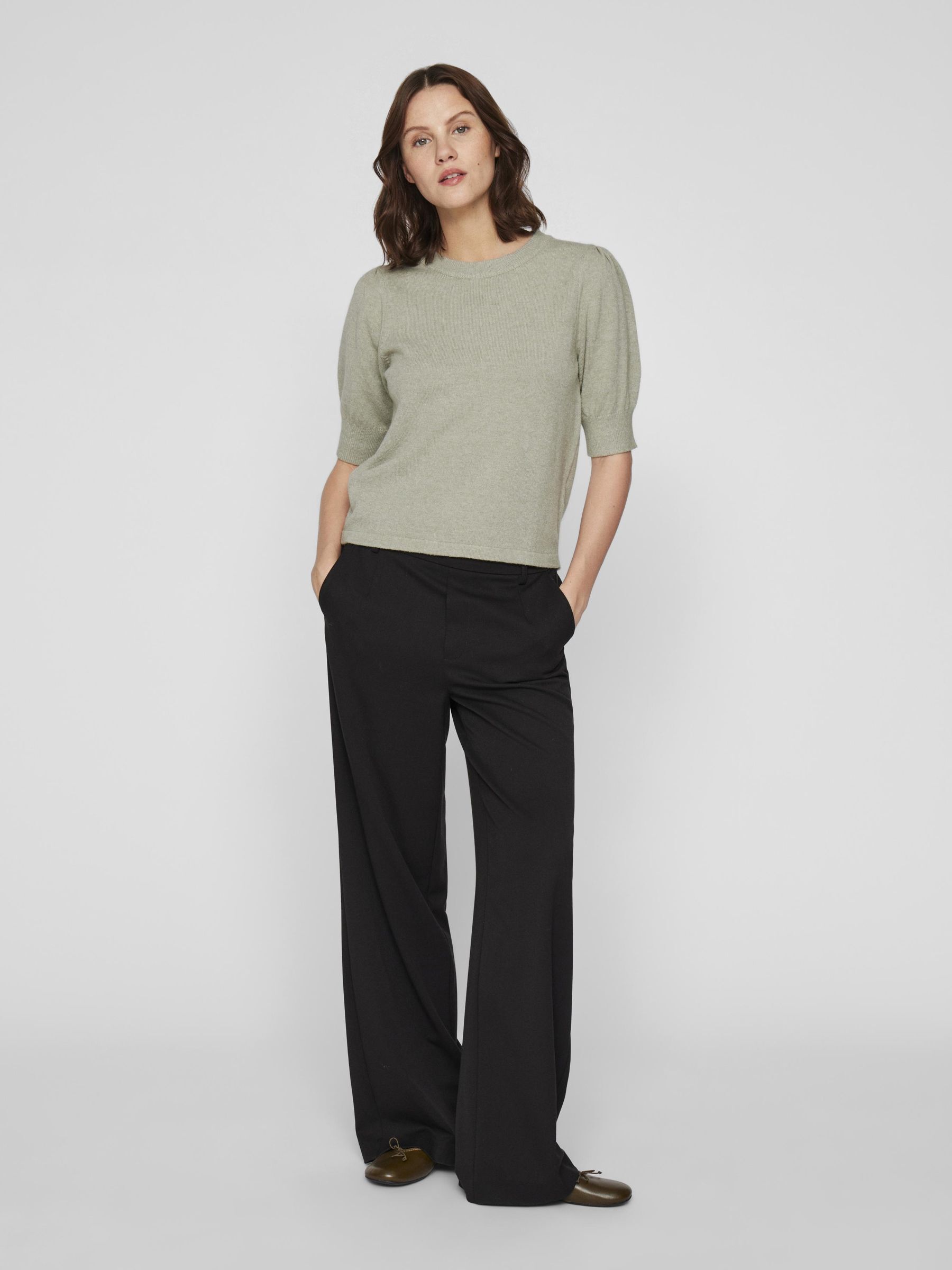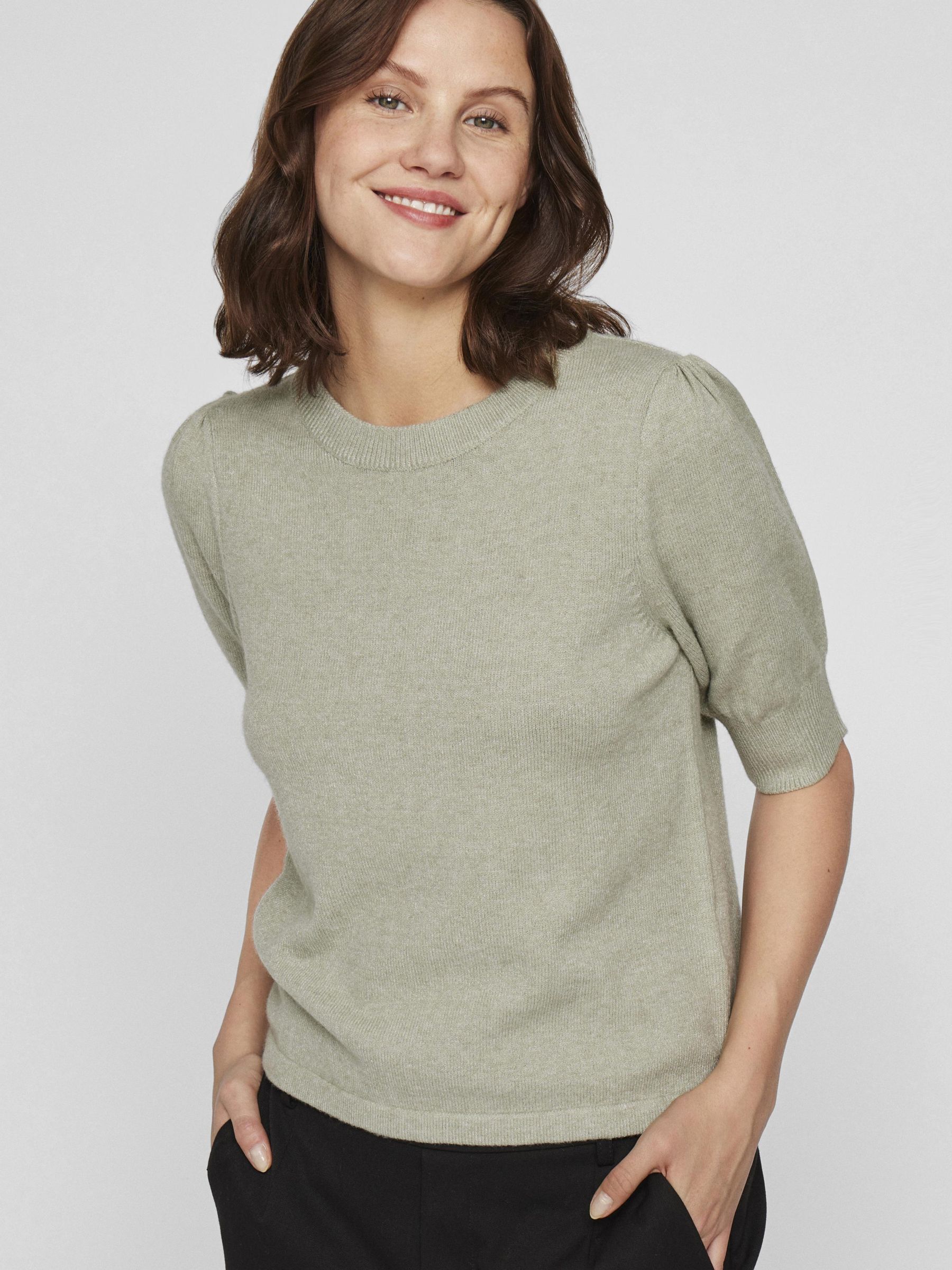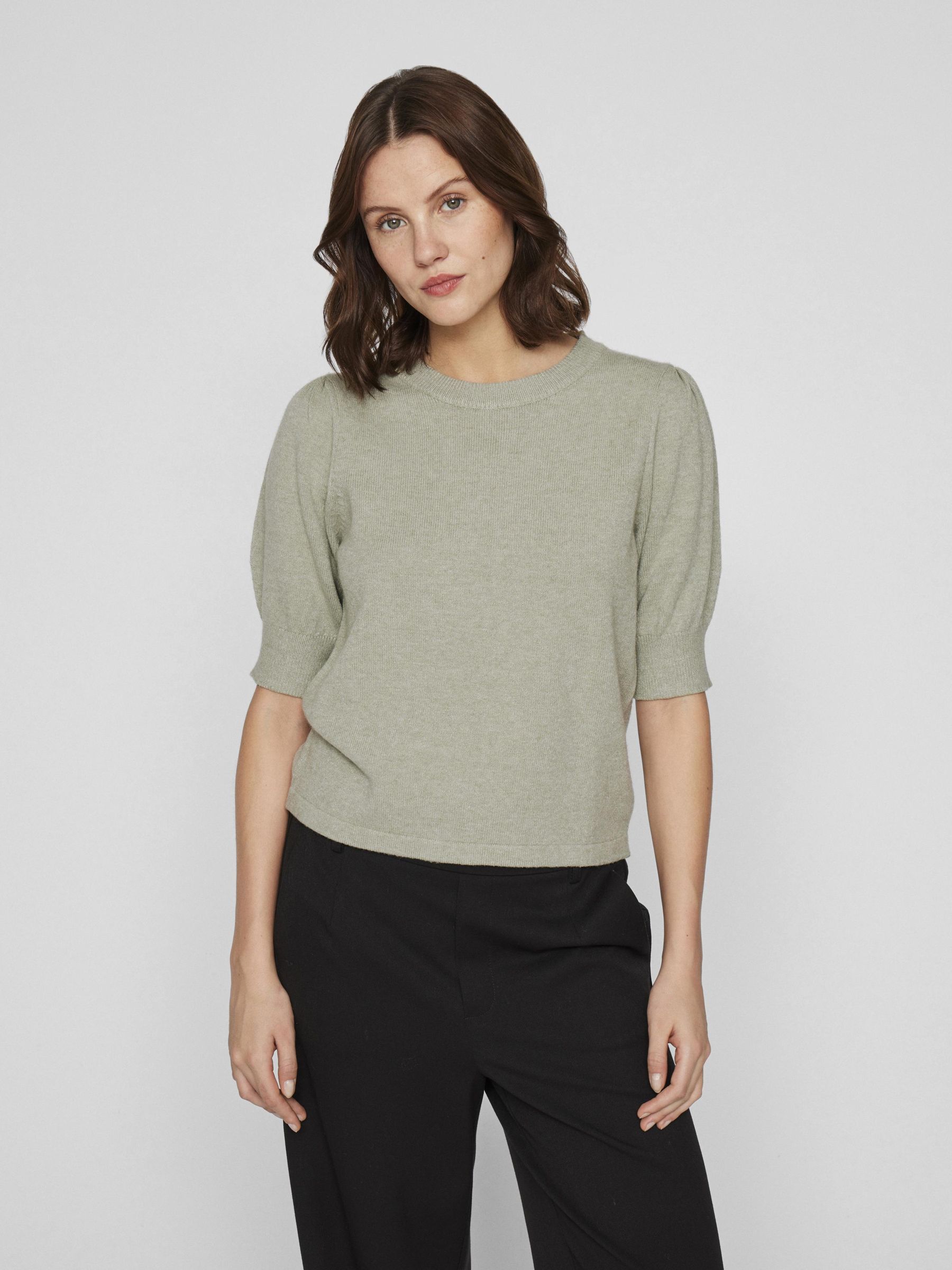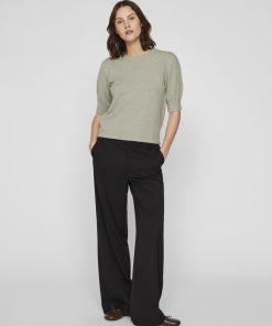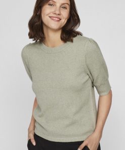 VILA Women’s Viril Short Sleeved Knitted Top | Oil Green