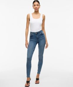 VILA Women’s Visarah Mid-waist Skinny Fit Jeans | Medium Blue Denim