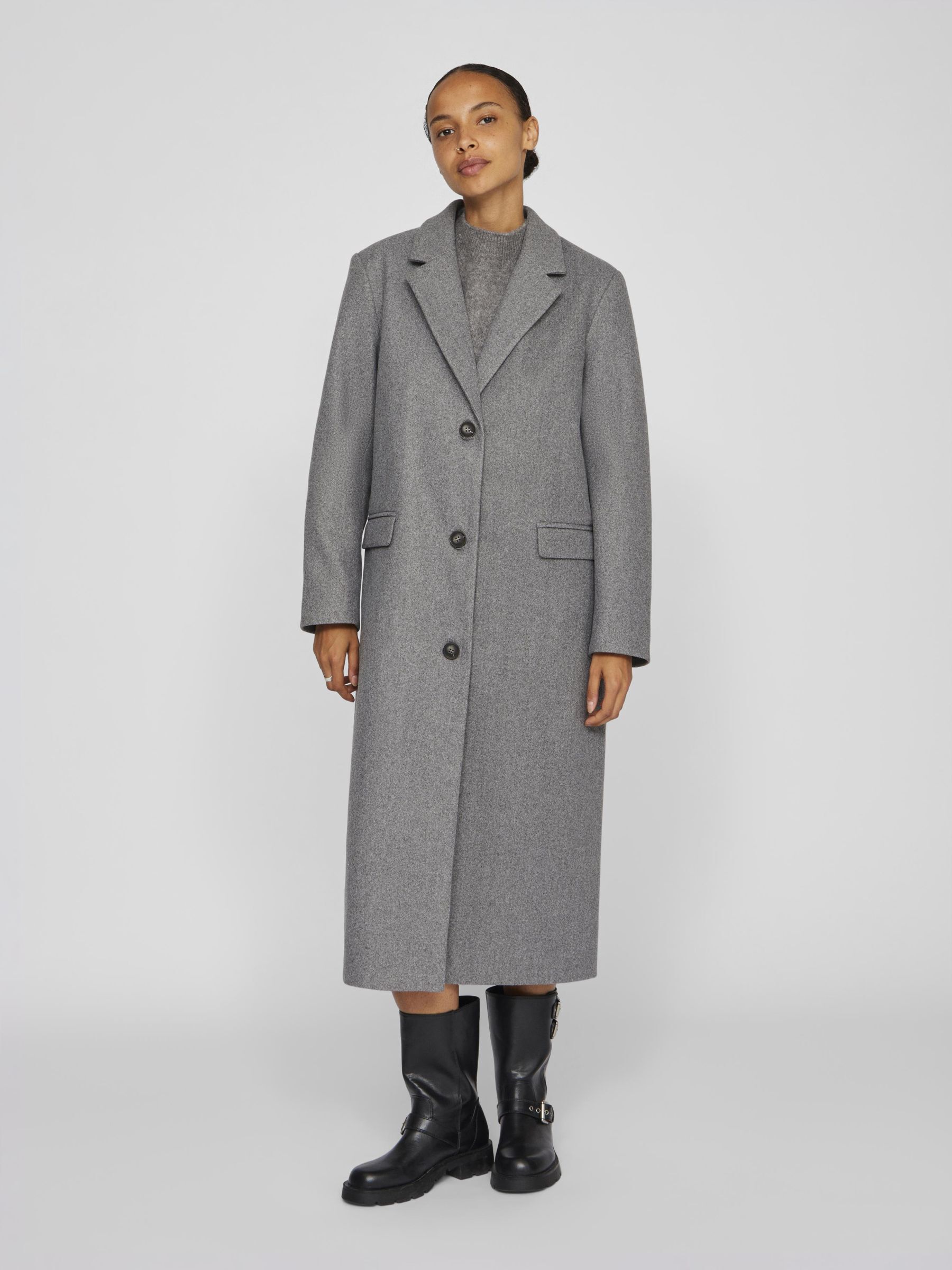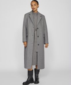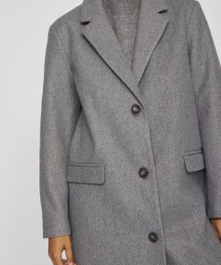 VILA Women’s Visolo Buttoned Coat | Medium Grey Melange