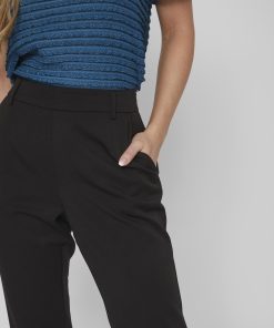 VILA Women’s Vivarone Slim Fit High Waisted Trousers | Black