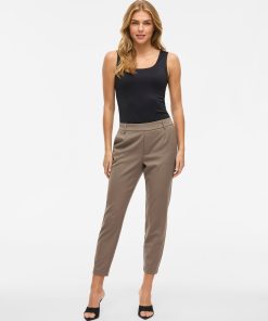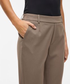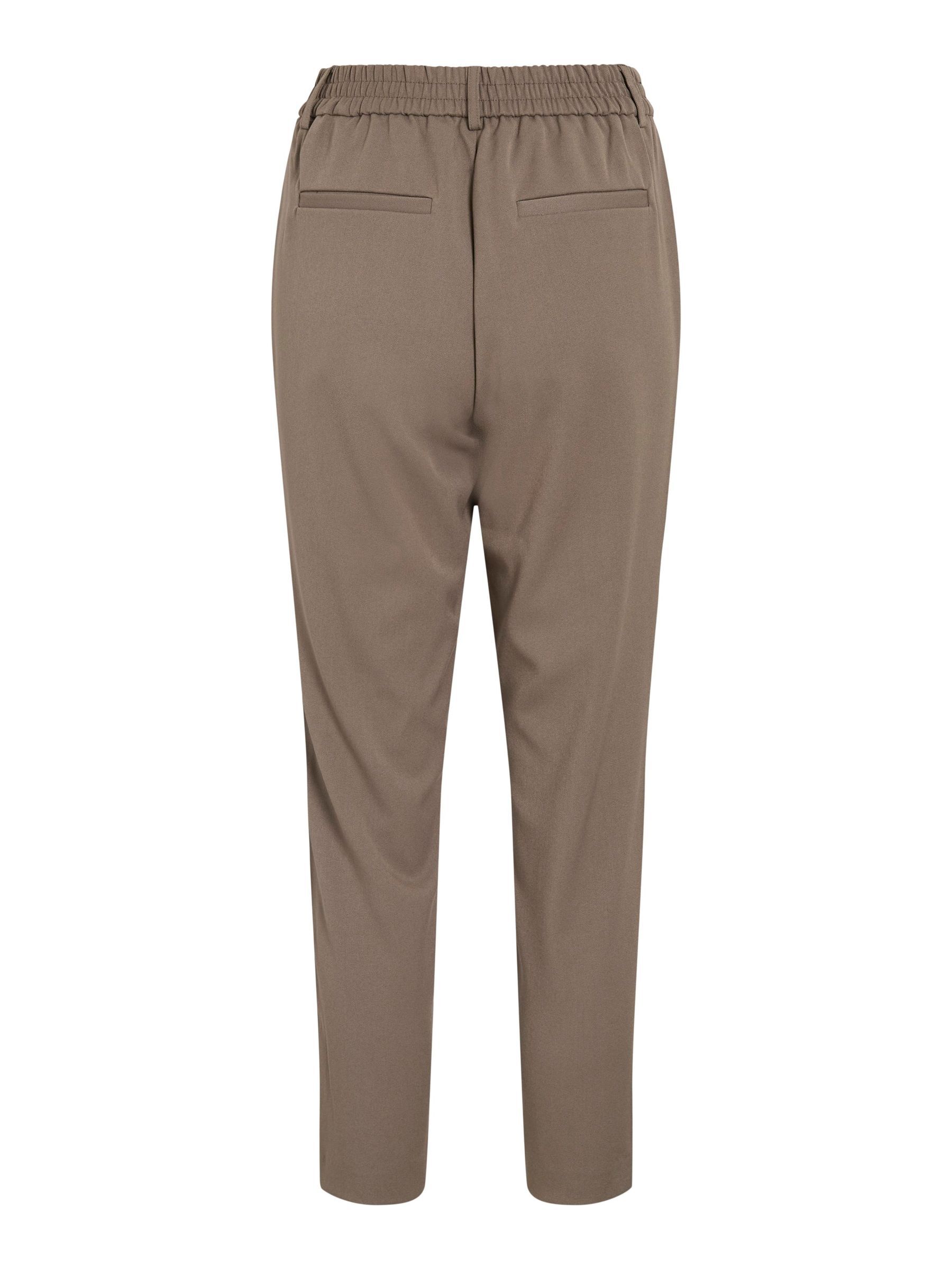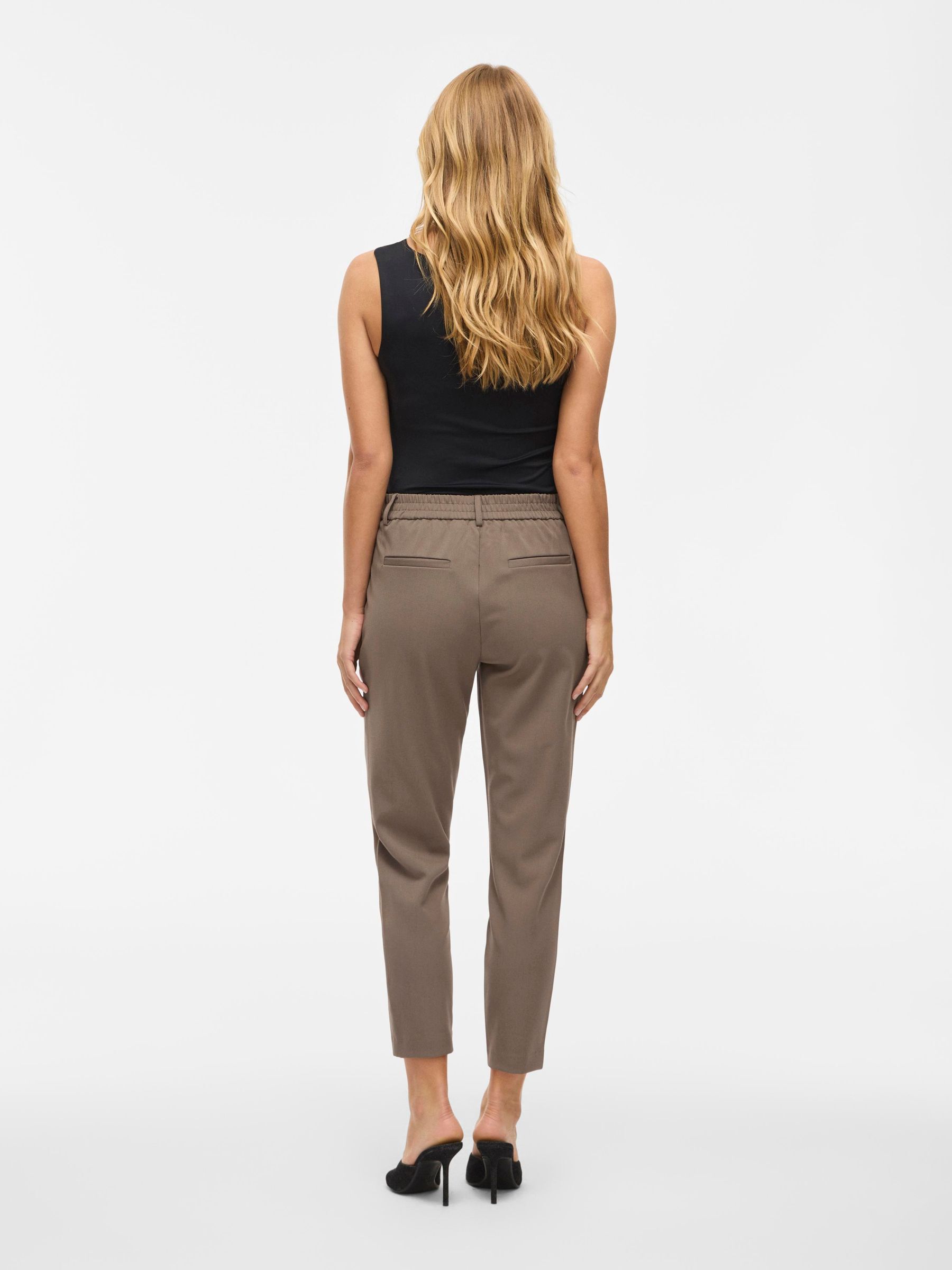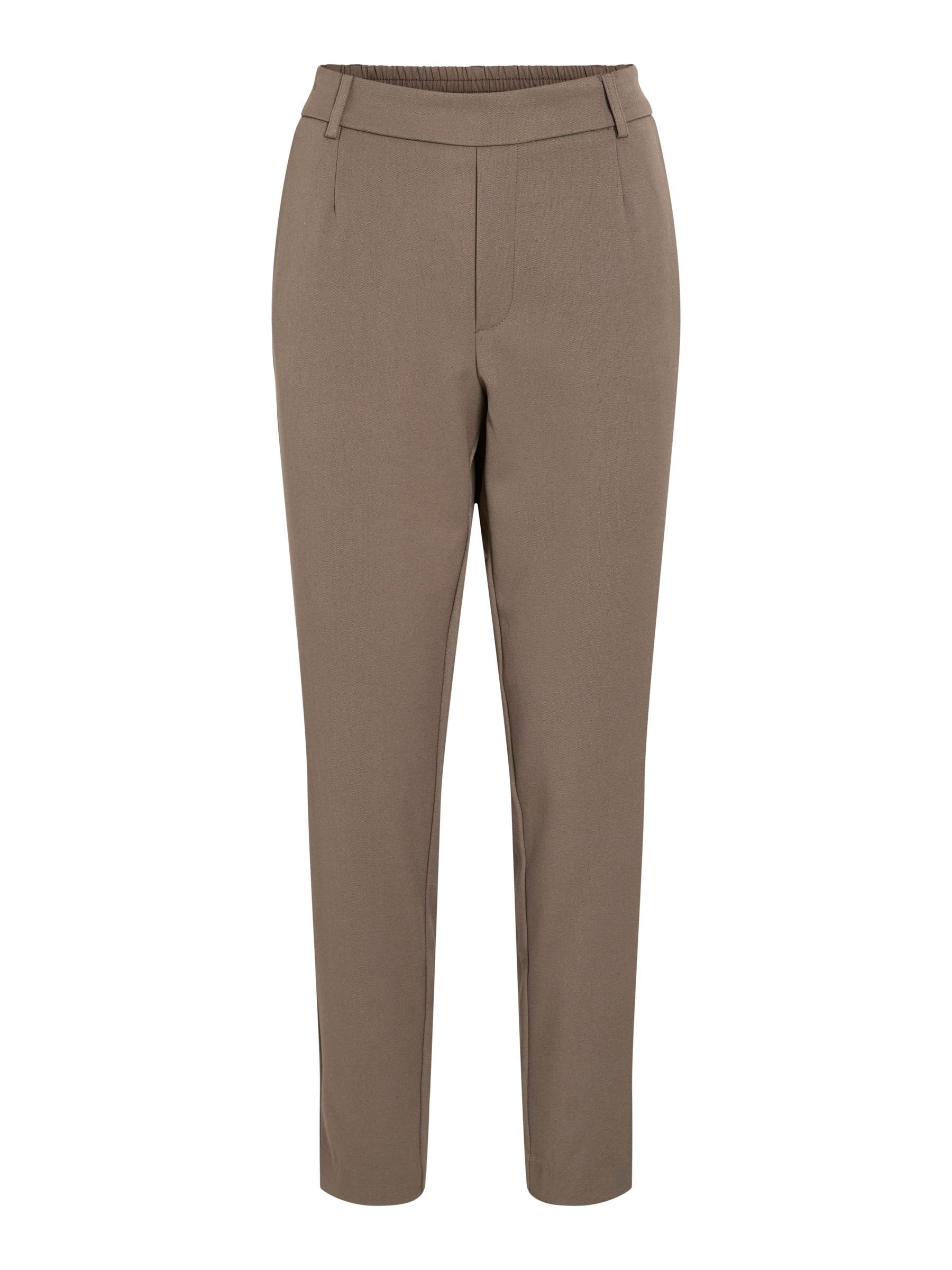 – High waist pants- Stretch-back waist- Faux zip fastening- Side pockets- Decorative back pockets- Belt loops – Straight, slim fit- Inseam: 69 cm in size 38- Frontrise: 28 cm in size 38