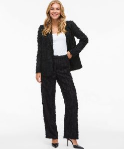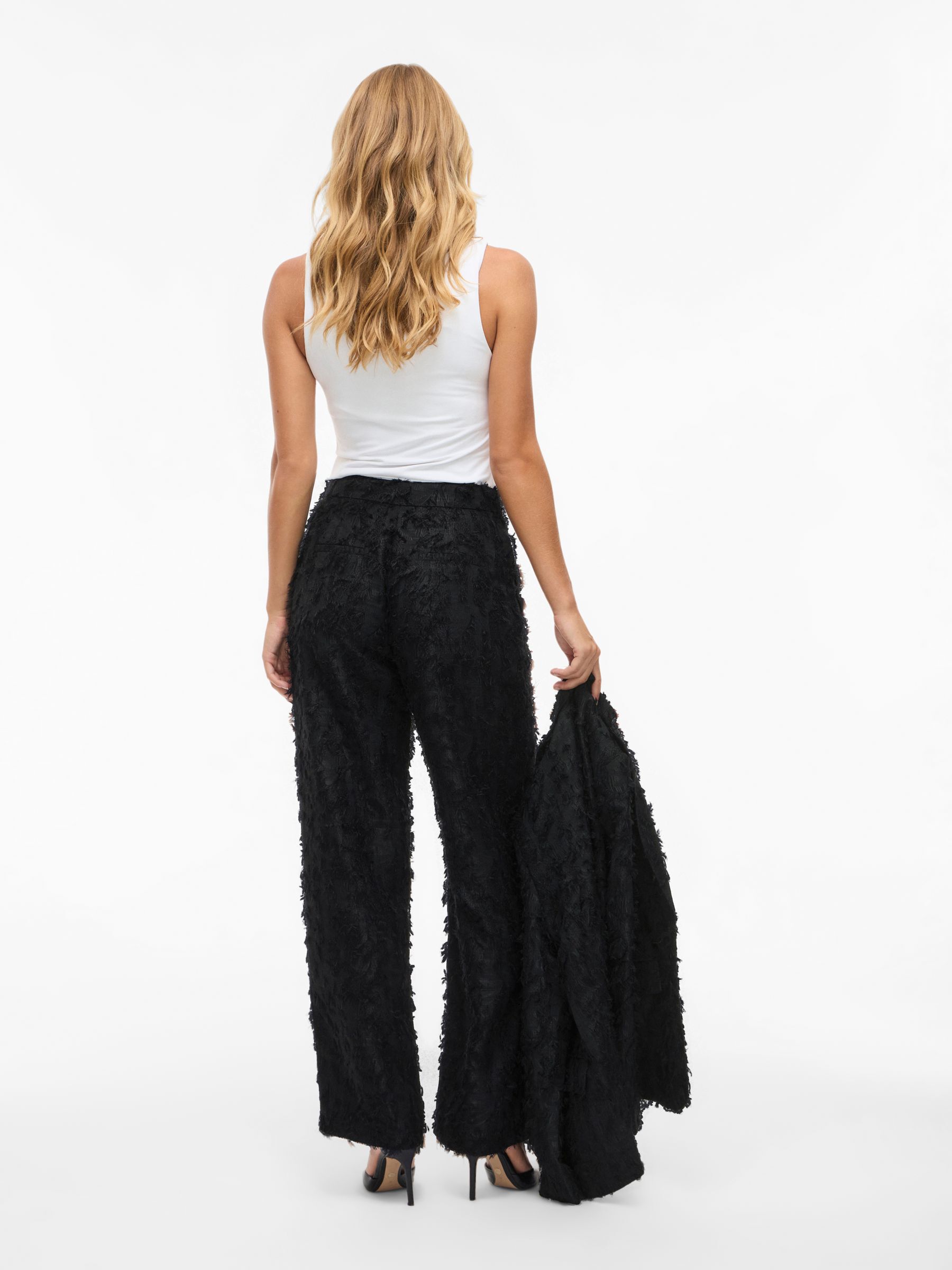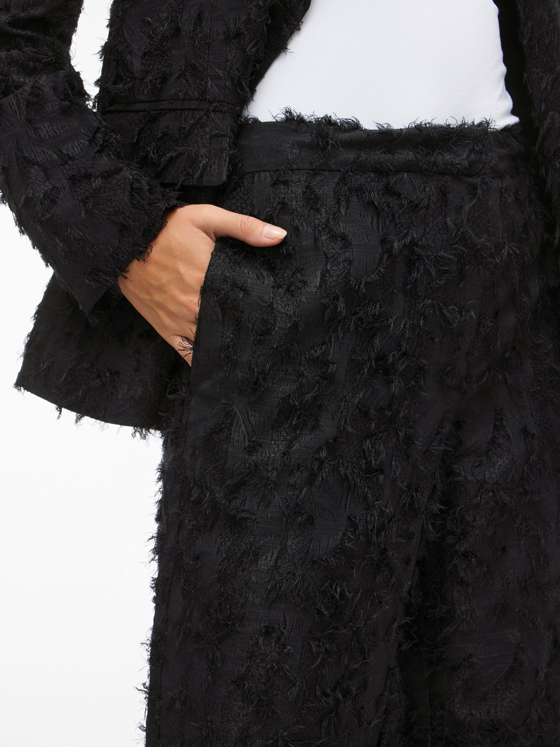 • Tailored trousers• High waist• Zip, button and clasp fastening• Side pockets• Decorative back pockets• Textured fabric• Straight fit• Inseam: 80 cm in size 38• Frontrise: 31.5 cm in size 38