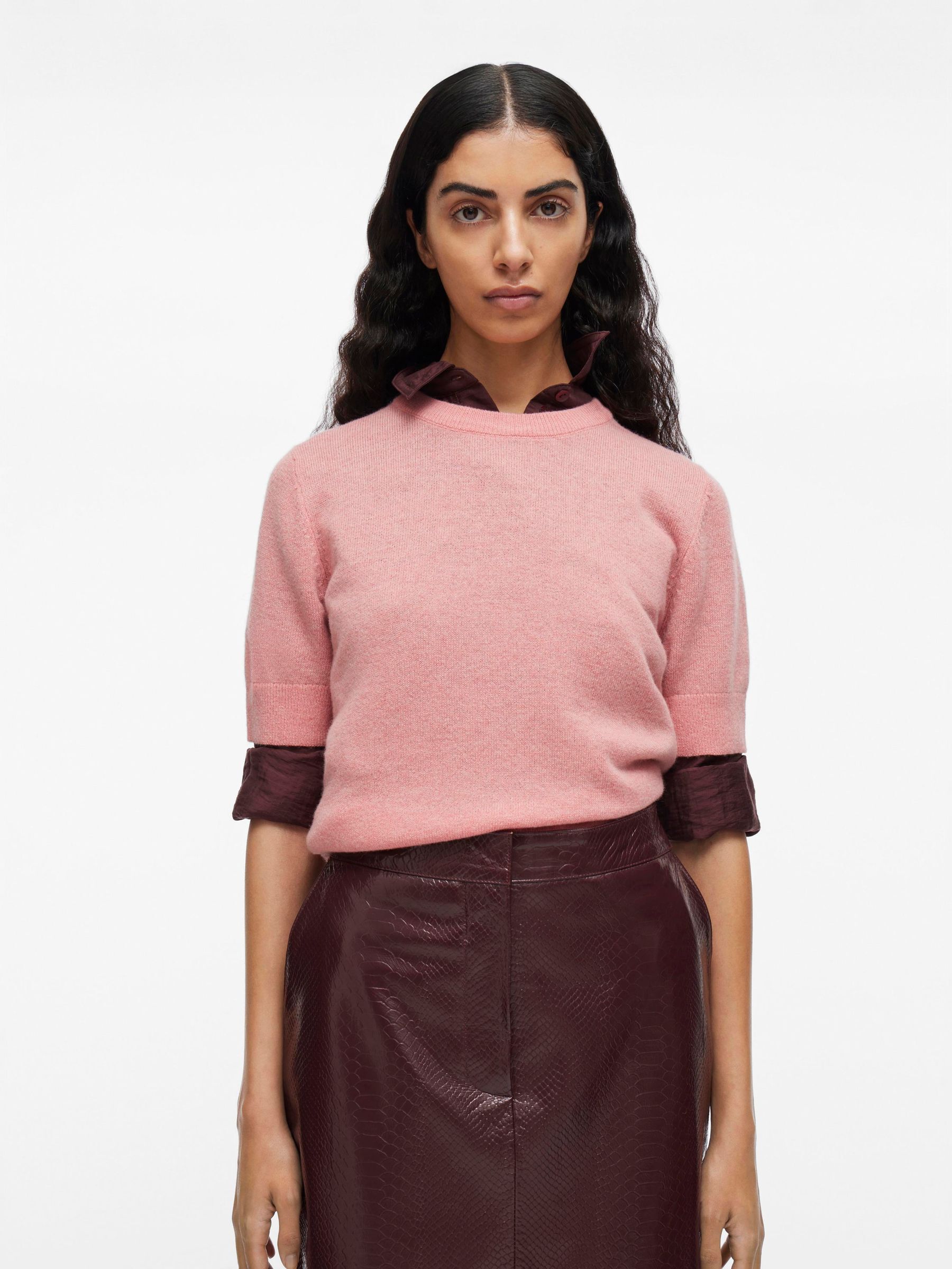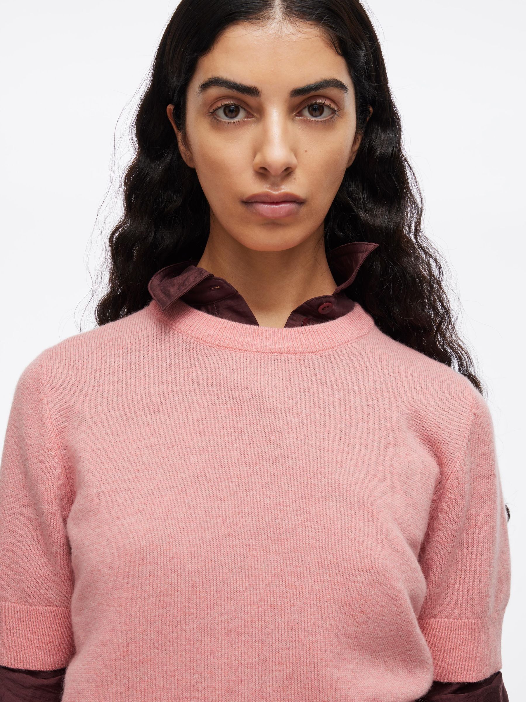 • Knitted wool-blend top• Short sleeves• Round neck• Ribbed trims• Regular fit• Length: 57 cm in size M• Sleeve length: 25 cm in size M