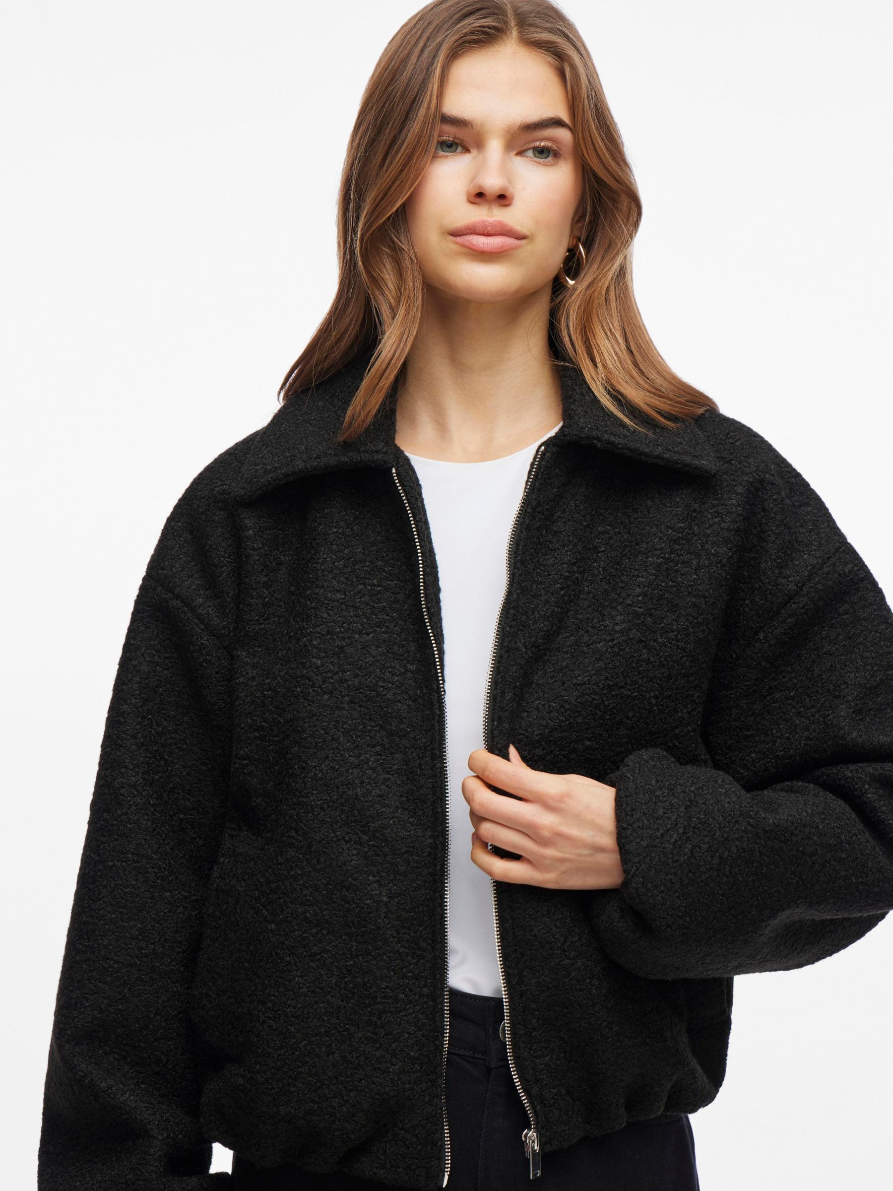 • Long sleeved bomber jacket• Front zip fastening• Front pockets• Elastic cuffs• Dropped shoulders• Elasticated waist• Regular fit• Length: 58 cm in size 38• Sleeve length: 62 cm in size 38