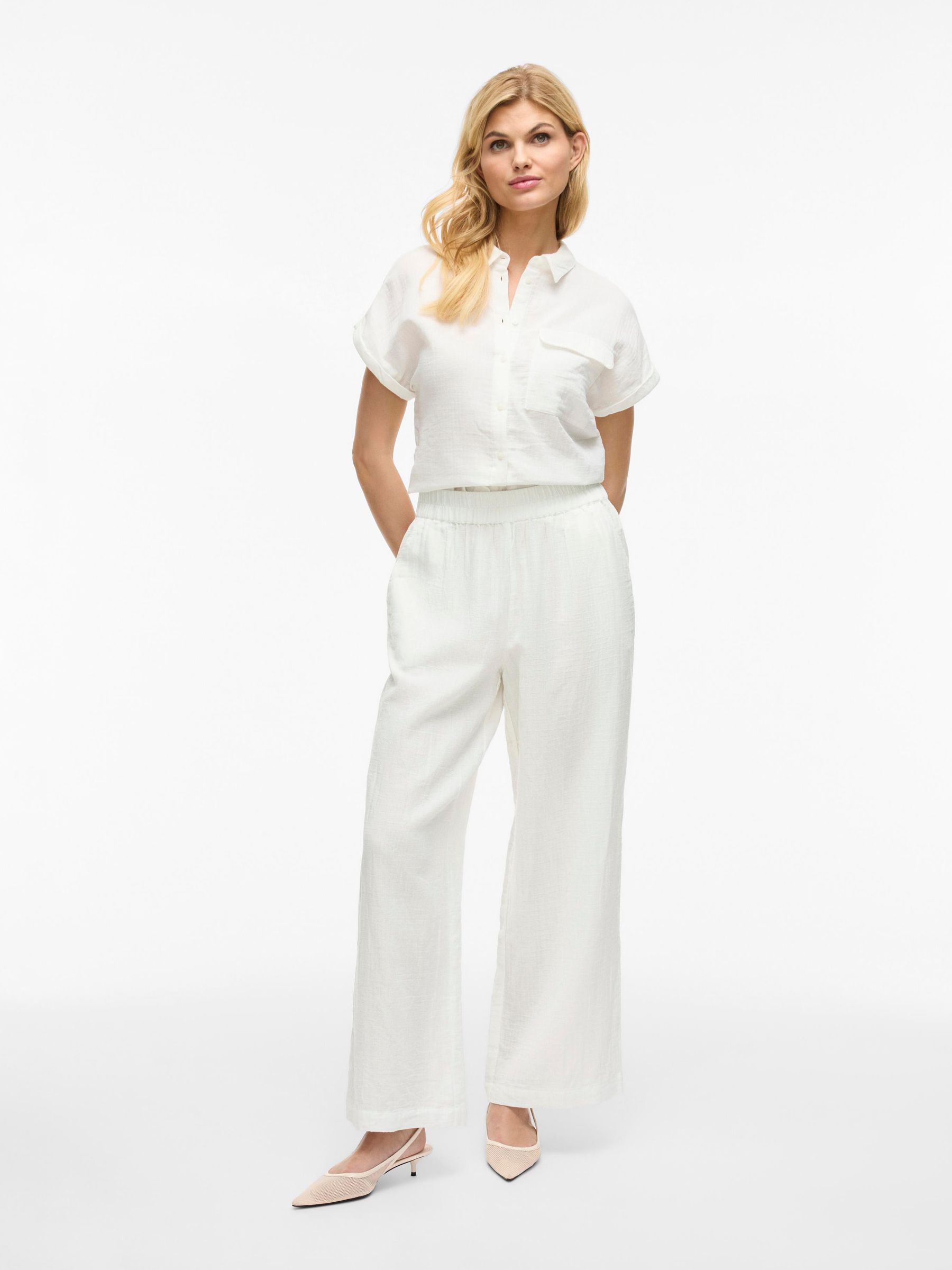 • High-waist trousers• Side pockets• Elastic waistband• Wide fit• Inseam: 74 cm in size M• Frontrise: 31 cm in size M